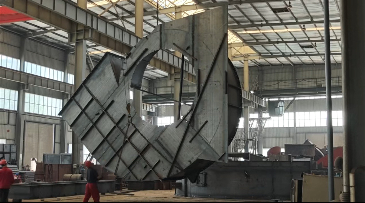 我公司叶团结技术团队通过优化设计工艺,攻克了焊接变形控制、整体精度保障、气动性能参数保证等难题,确保机壳在严苛工况下的可靠性和耐久性。该产品叶轮直径近3.2米,也在同步紧张制作中。此系列产品的成功问世,进一步提升了我公司在高端风机装备领域的核心竞争力,未来,企业将继续聚焦大型化、智能化风机研发,助力国家“双碳”目标实现及工业绿色转型。