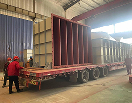 照片中的主角,是一组已经完成制造、等待启程的大型离心风机消声器。
